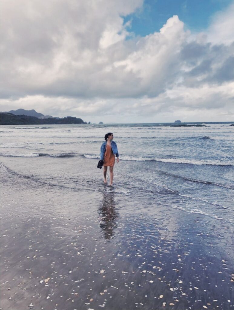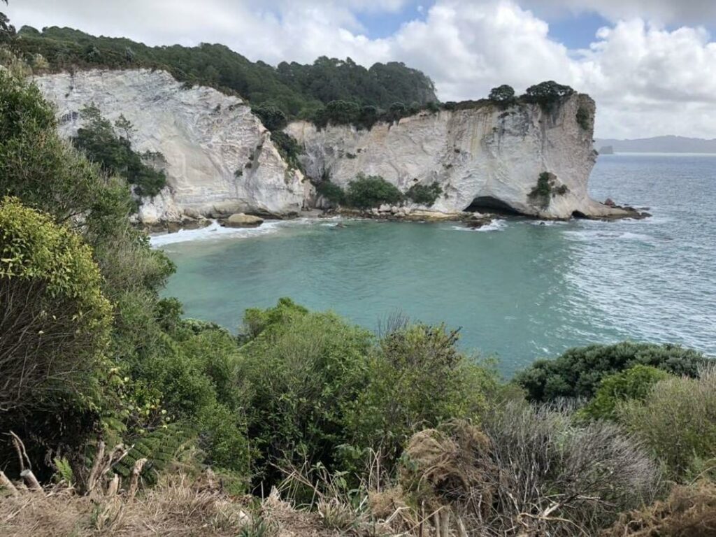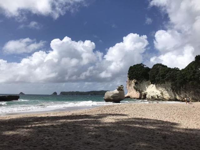 Danach sind wir zur Cathedral Cove gefahren, wo wir eigentlich eine Kayaktour gebucht hatten, die aber dees schlechten Wettters wegen buchstäblich ins Wasser gefallen ist. Daher haben wor eine kurze Wanderung zu der Höhle unternommen. Diese ist sehr bekannt geworden, dadurch dass als Drehort für den Narnia Film fungierte. Ich persönlich habe den Film nie gesehen, muss aber sagen, dass es trotzdem beindruckend war. Dort verbrachte ich mit den anderen den Nachmittag und da das Wetter zeitweise auch besser war, konnte man auch schwimmen gehen. Nachdem wir wieder den Klippen hinauf zum Anfangspunkt gegangen waren war der Trip schon fast zu Ende. Zuletzt sind wir noch auf einen anderen Strand gefahren der am Rückweg lag. Eines der fastzinierendsten Dinge in Neuseeland ist, dass man oft ganz alleine auf einem Strand sein kann, weit und breit keine andere Menschenseele. In Auckland ist immer viel los aber je weiter man sich davon entfernt desto weniger dicht besiedlet ist die Region. Ich glaube wenn man je genug von Menschen und der Gesellschaft hat ist Neuseeland der rifhtig Ort um sich zurückzuziehen.